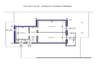Piano primo: Disimpegno, camera matrimoniale con balcone di circa 5 mq, bagno, seconda camera da letto, balcone.